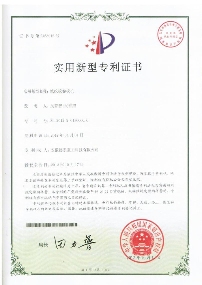 DETSCH 波纹板卷板机 Corrugated plate roller